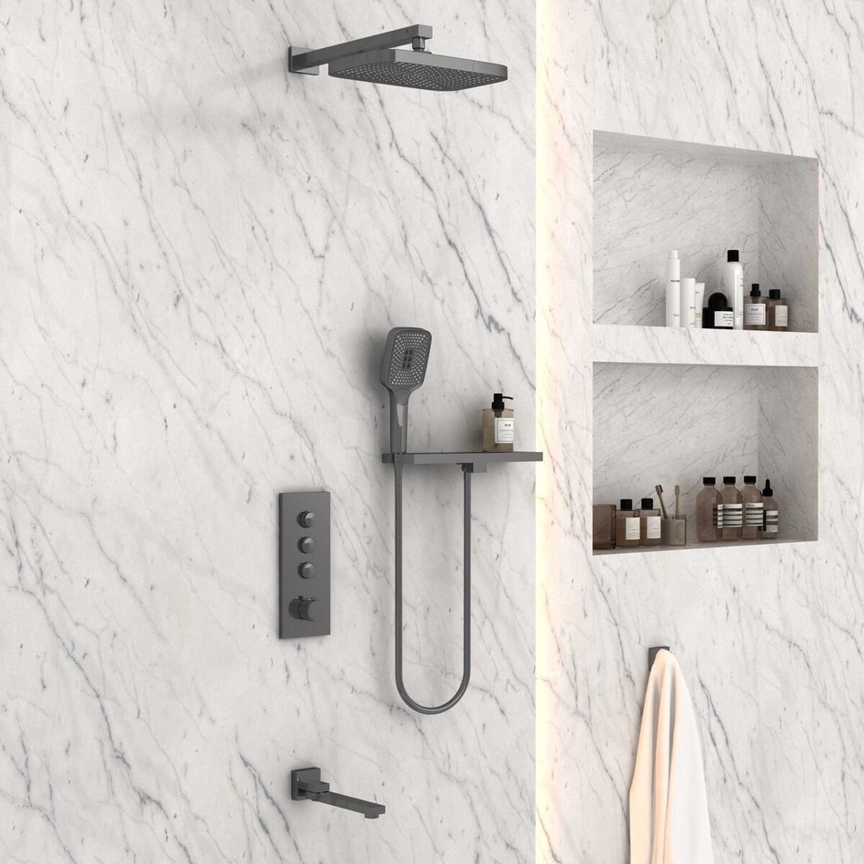 Душевая система Vincea, термостатическая, 3 потребителя, с изливом, воронёная сталь, gunmetal, VSFW-431T1RGM