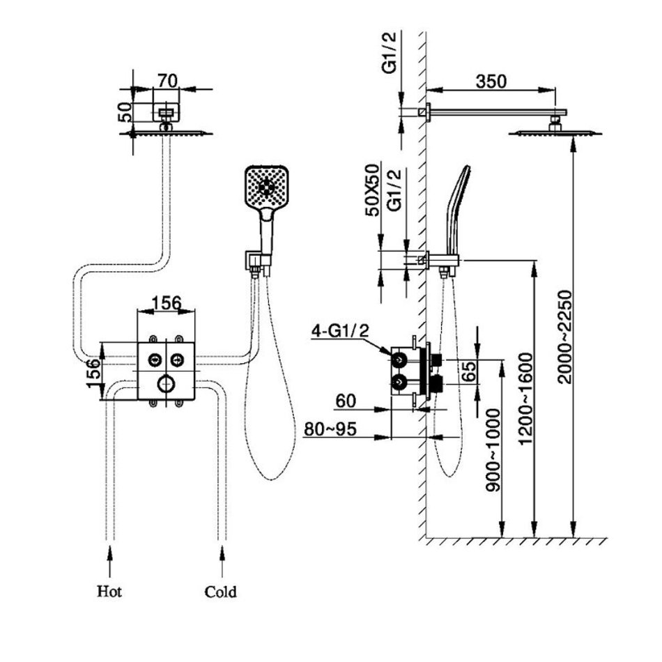 - Форма верхнего душа: квадратный