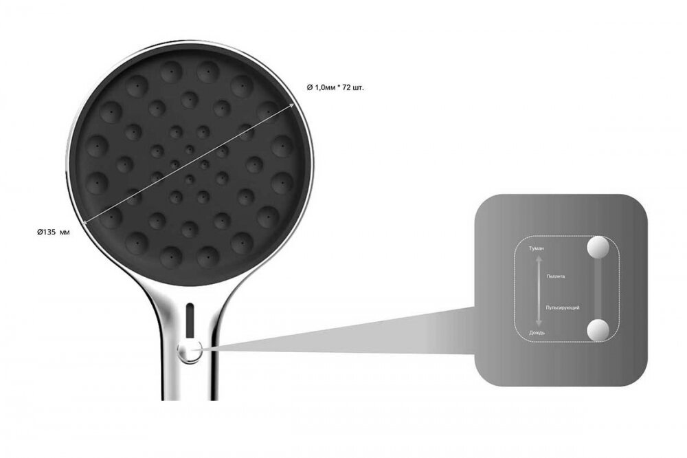 - 4-х режимный ручной душ из ABS cо слайдером (Rain - Pulsating Rain - SPA - Mist)