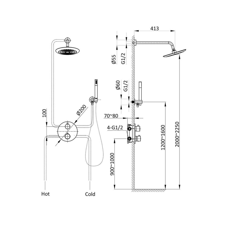Состав комплекта: верхний душ, ручной душ, смеситель со встраиваемой частью