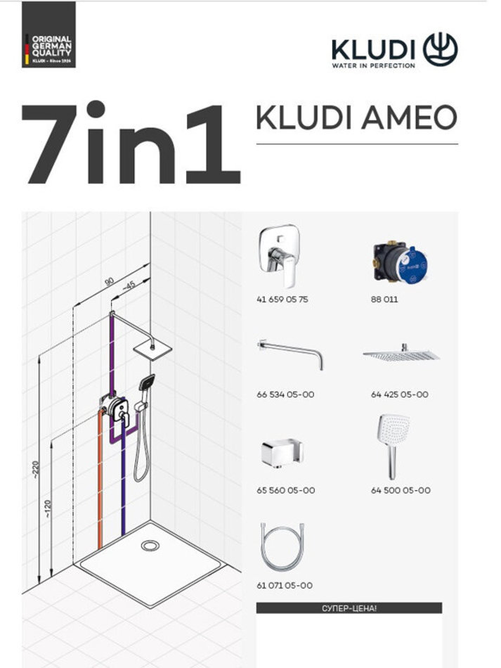 Душевой набор 7 в 1 Kludi Ameo 416720575 встраиваемый, хром