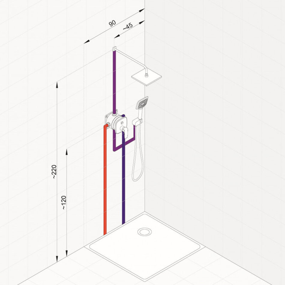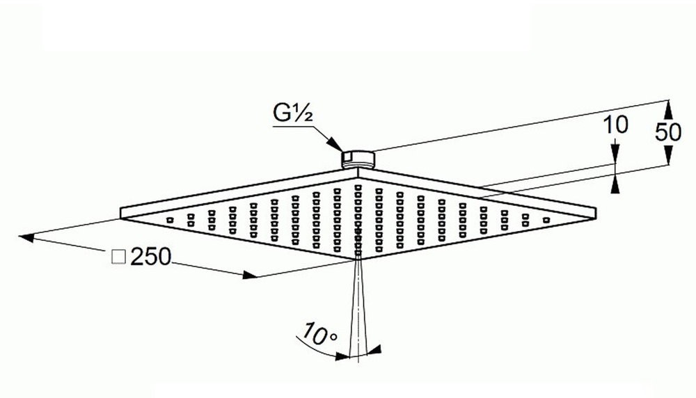 - Ограничение расхода воды верхним душем до 9 л/мин при давлении 3 бара