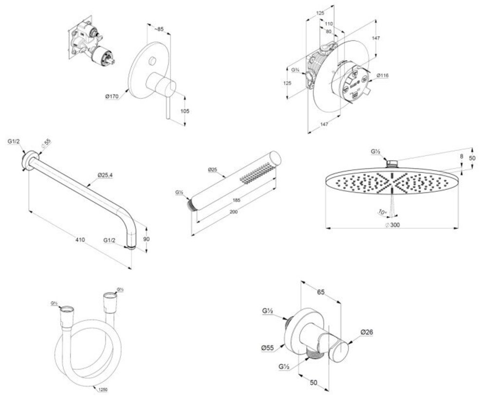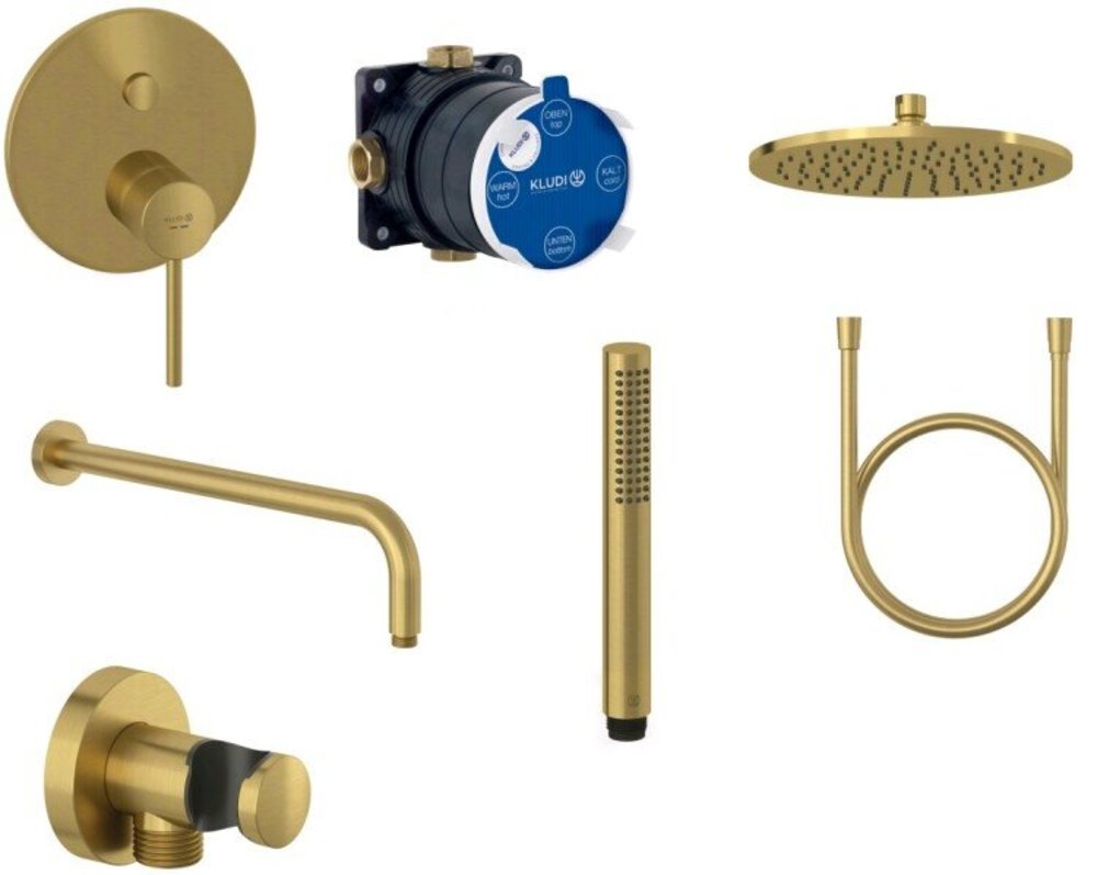 Душнвая система Kludi Bozz, 38925N076, 7 в 1 с кнопочным переключателем, брашированное золото