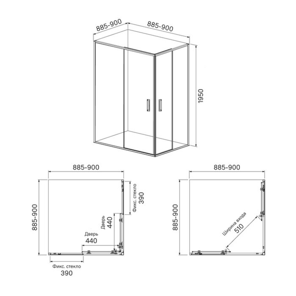 Душевое ограждение Iddis Zodiac ZOD6CS9i23 90 x 90 x 195 см стекло прозрачное, хром (глянцевый алюминиевый профиль)