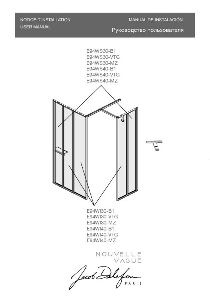 Душевое ограждение Jacob Delafon Nouvelle Vague 500, 47 см, профиль черный, стекло прозрачное, E94WS40-B1