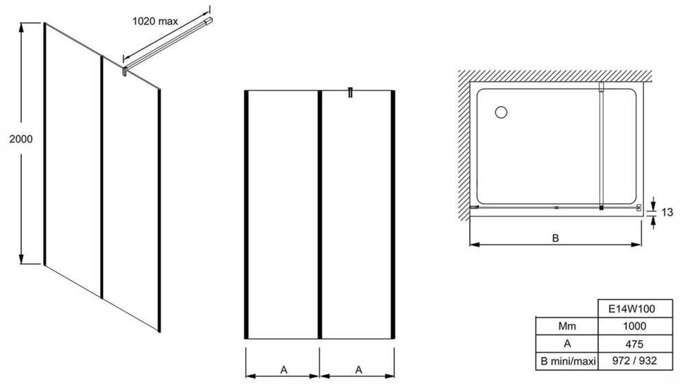 Черная алюминиевая полочка 40 см и скребок включены в комплект вместе с дверью walk-in