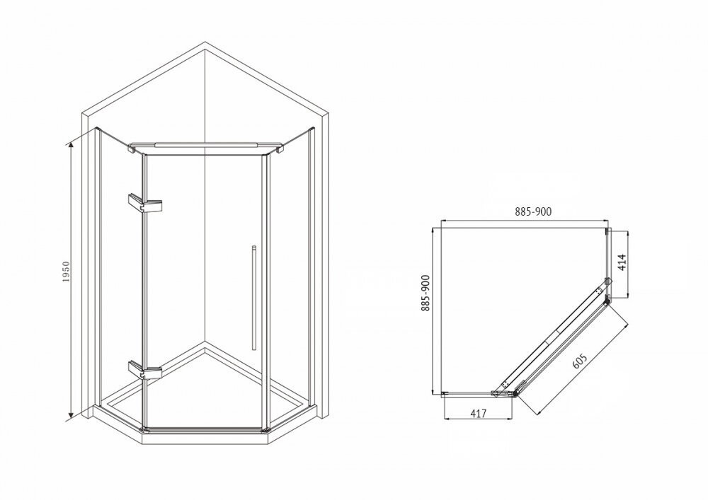 Душевой уголок Abber Ewiges Wasser, 90 х 90 х 195 см, стекло матовое, профиль хром, AG05090M