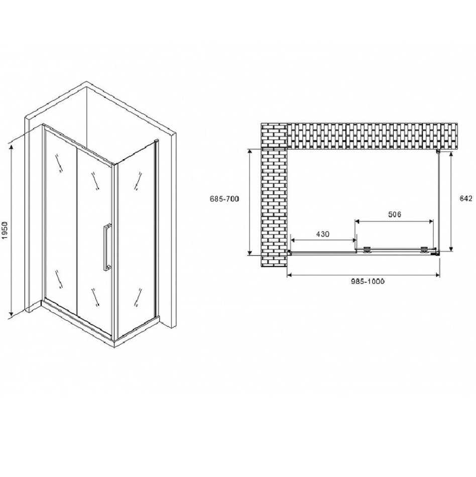 Душевой уголок Abber Schwarzer Diamant, 100 х 70 см, стекло прозрачное, профиль хром, AG30100H-S70
