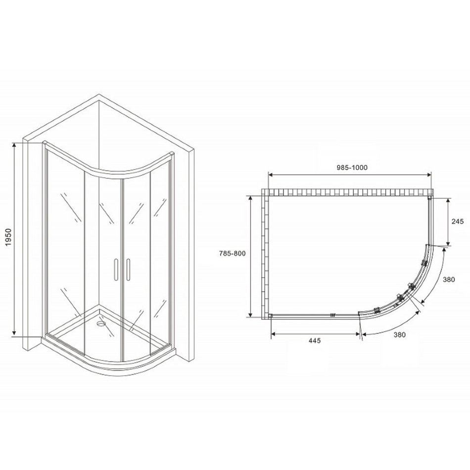 Душевой уголок Abber Schwarzer Diamant, 100 х 80 см, стекло матовое, профиль хром, AG01180M