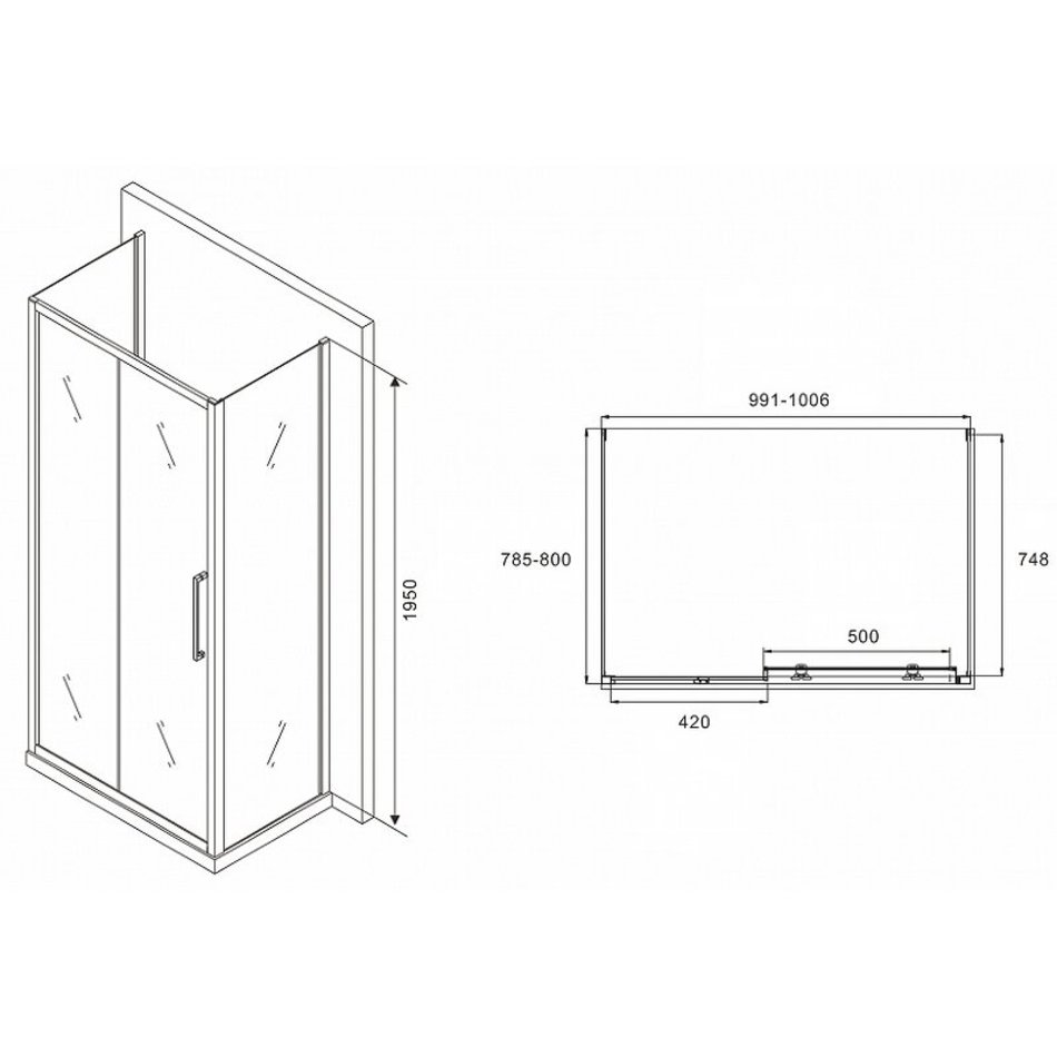 Душевой уголок Abber Schwarzer Diamant, 100 х 80 см, стекло матовое, профиль хром, AG30100MH-S80M-S80M