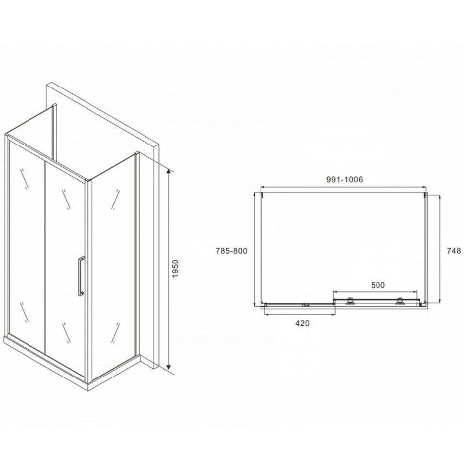 Душевой уголок Abber Schwarzer Diamant, 100 х 80 см, стекло прозрачное, профиль черный, AG30100BH-S80B-S80B