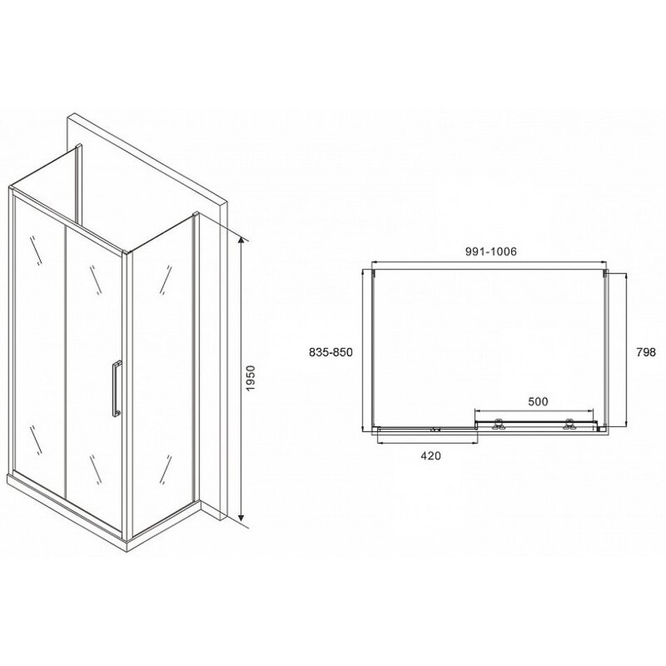 Душевой уголок Abber Schwarzer Diamant, 100 х 85 см, стекло матовое, профиль хром, AG30100MH-S85M-S85M