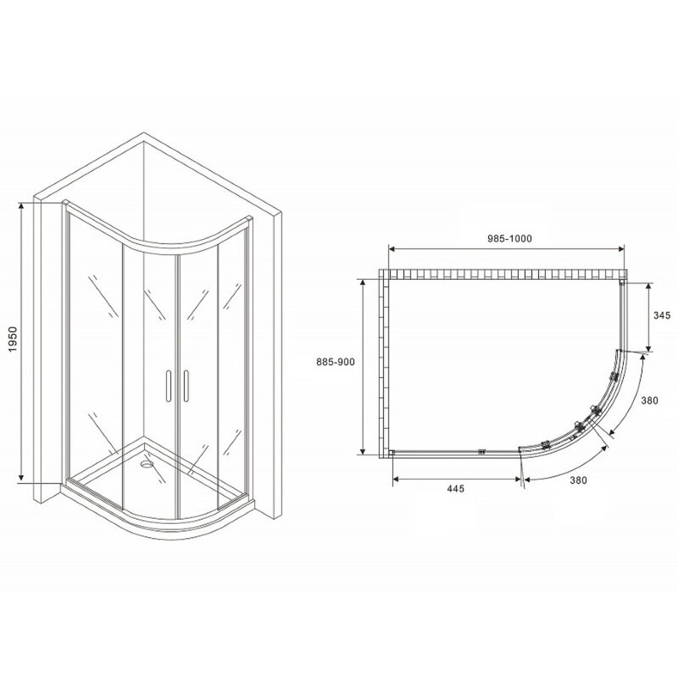 Душевой уголок Abber Schwarzer Diamant, 100 х 90 см, стекло прозрачное, профиль черный, AG01190B