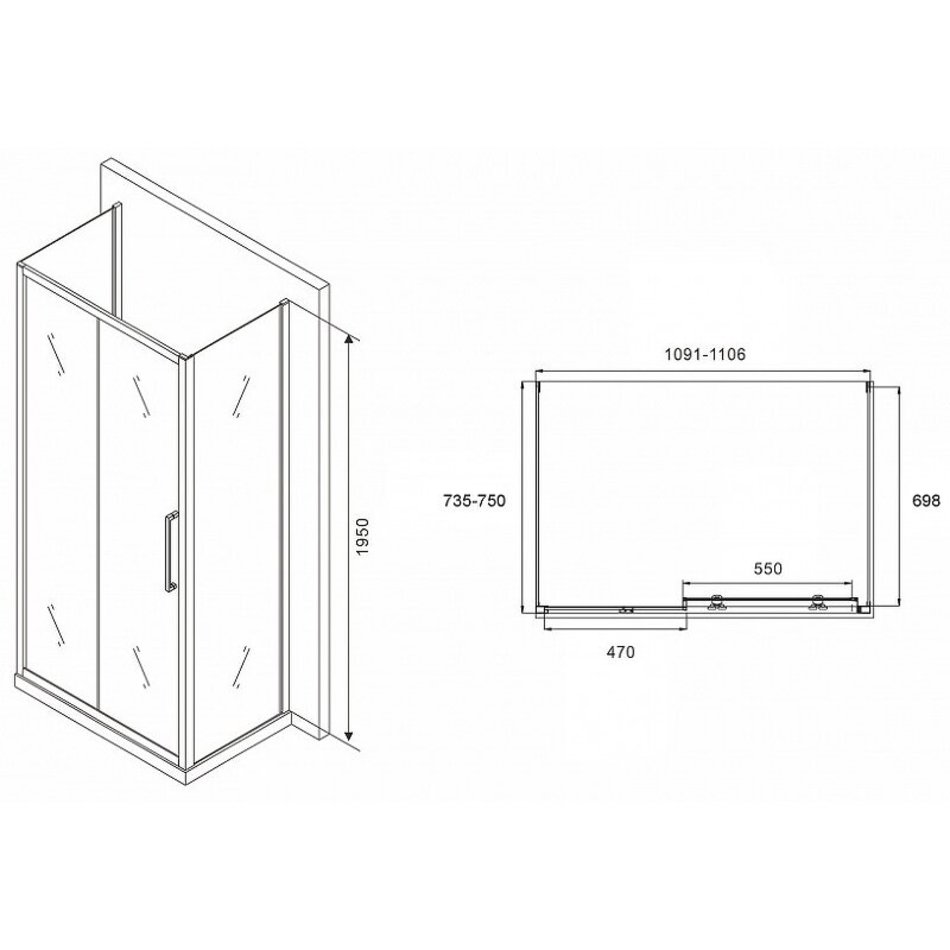 Душевой уголок Abber Schwarzer Diamant, 110 х 75 см, стекло матовое, профиль хром, AG30110MH-S75M-S75M