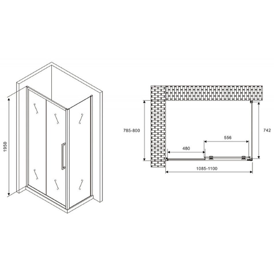 Душевой уголок Abber Schwarzer Diamant, 110 х 80 см, стекло матовое, профиль хром, AG30110MH-S80M