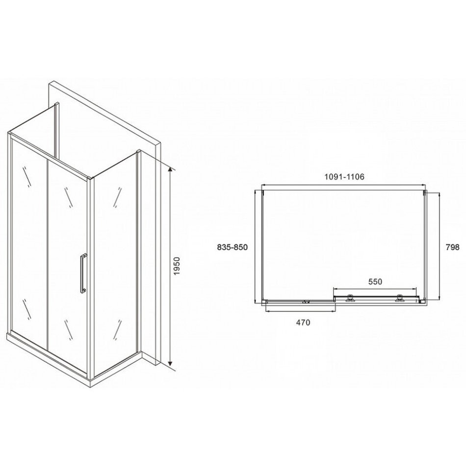 Душевой уголок Abber Schwarzer Diamant, 110 х 85 см, стекло прозрачное, профиль хром, AG30110H-S85-S85