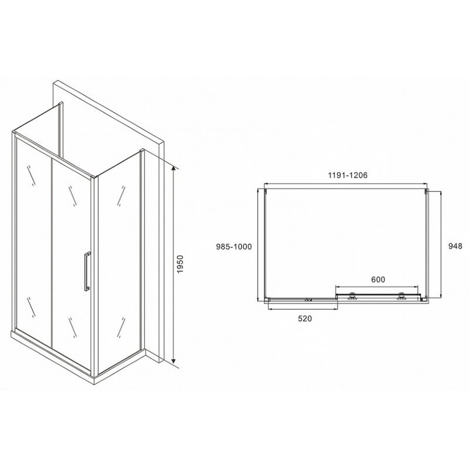 Душевой уголок Abber Schwarzer Diamant, 120 х 100 см, стекло матовое, профиль хром, AG30120MH-S100M-S100M