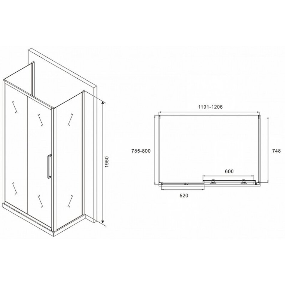 Душевой уголок Abber Schwarzer Diamant, 120 х 80 см, стекло матовое, профиль хром, AG30120MH-S80M-S80M