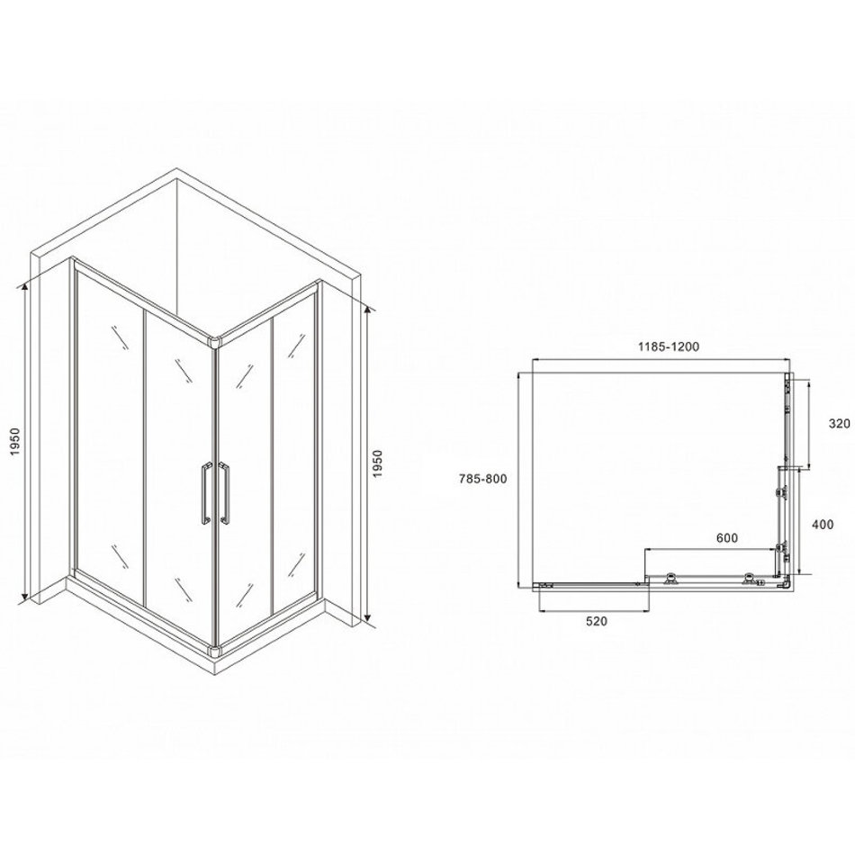 Душевой уголок Abber Schwarzer Diamant, 120 х 80 см, стекло прозрачное, профиль черный, AG02128BH