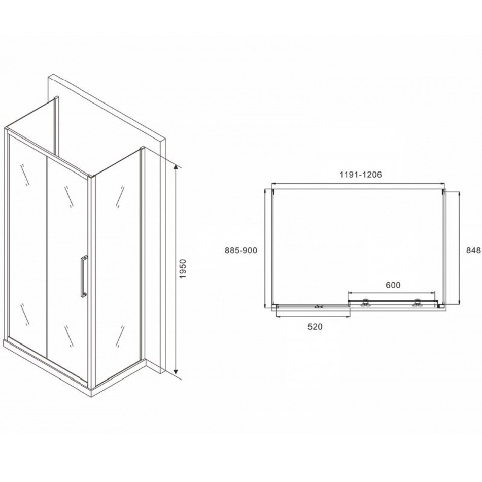 Душевой уголок Abber Schwarzer Diamant, 120 х 90 см, стекло прозрачное, профиль черный, AG30120BH-S90B-S90B