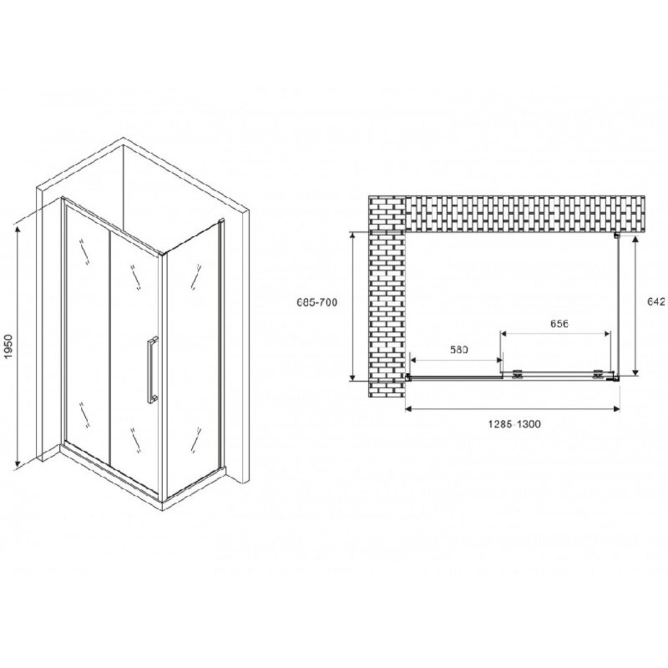 Душевой уголок Abber Schwarzer Diamant, 130 х 70 см, стекло прозрачное, профиль черный, AG30130BH-S70B