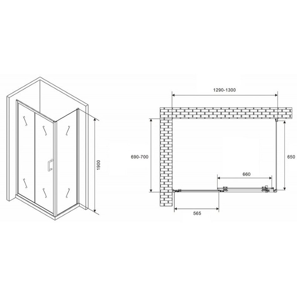 Душевой уголок Abber Schwarzer Diamant, 130 х 70 см, стекло прозрачное, профиль хром, AG301305-S705