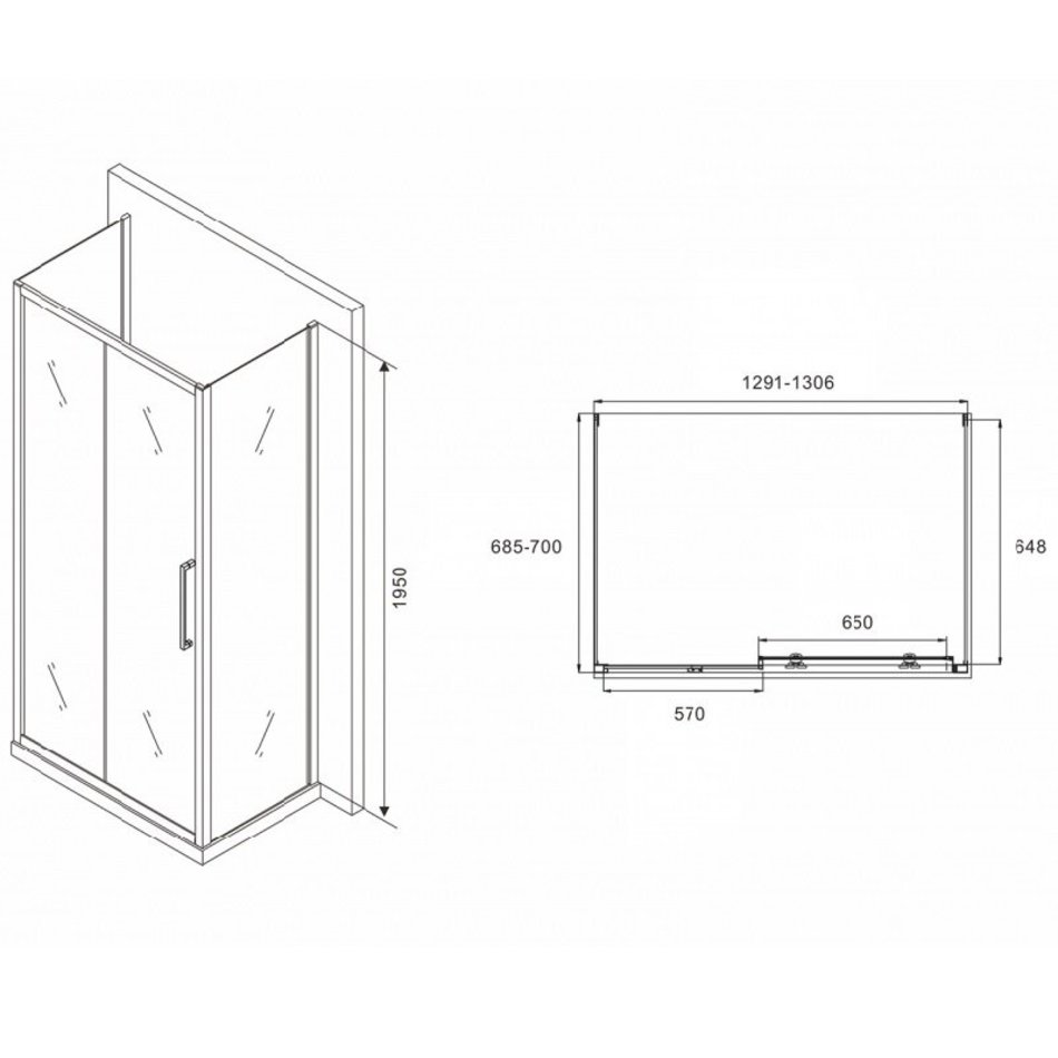 Душевой уголок Abber Schwarzer Diamant, 130 х 70 см, стекло прозрачное, профиль хром, AG30130H-S70-S70