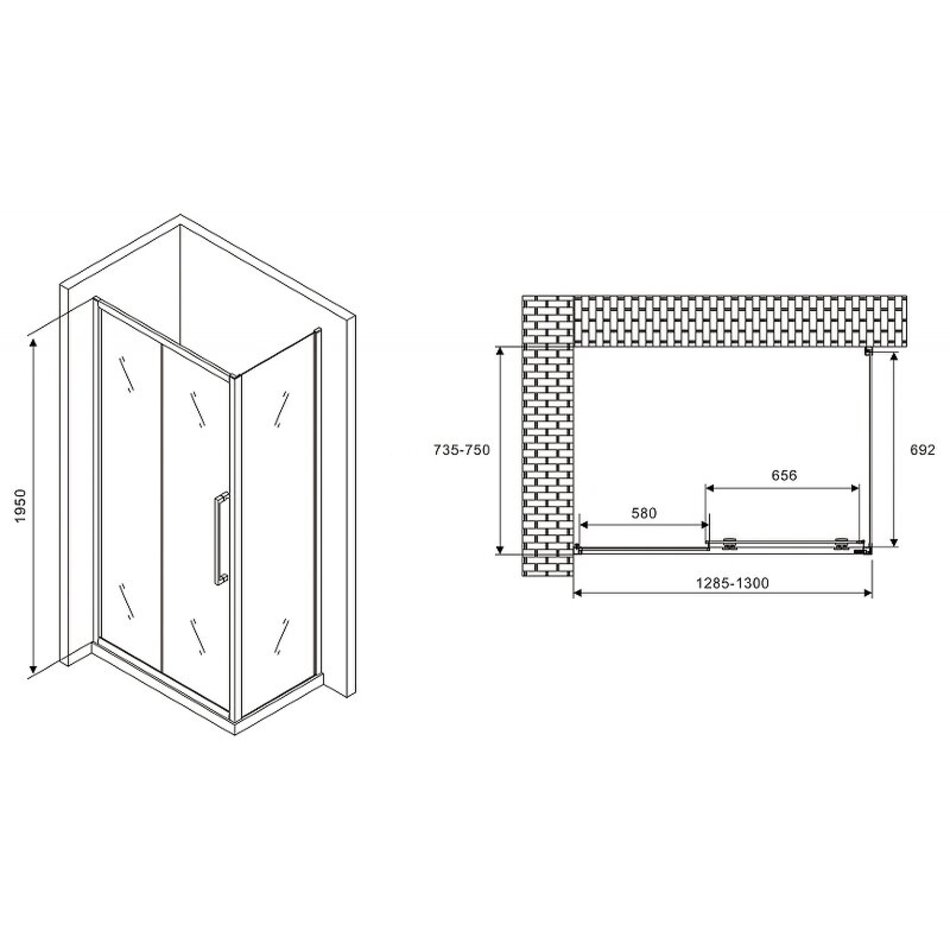 Душевой уголок Abber Schwarzer Diamant, 130 х 75 см, стекло прозрачное, профиль хром, AG30130H-S75