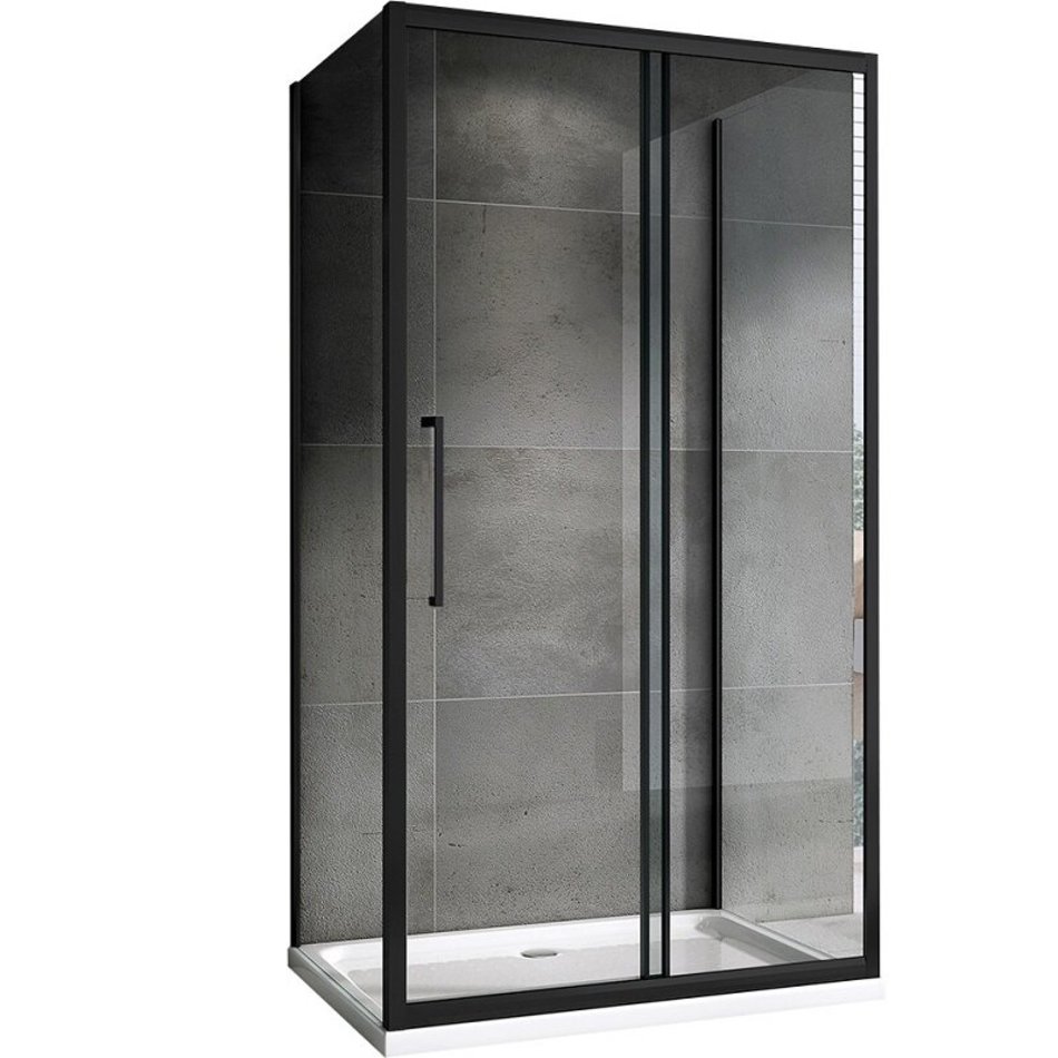 Душевой уголок Abber Schwarzer Diamant, 130 х 80 см, стекло прозрачное, профиль черный, AG30130BH-S80B-S80B