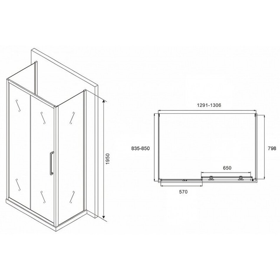 Душевой уголок Abber Schwarzer Diamant, 130 х 85 см, стекло матовое, профиль хром, AG30130MH-S85M-S85M