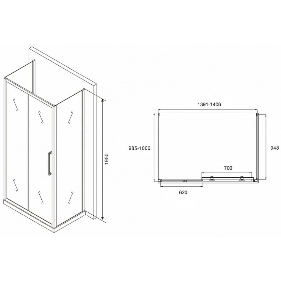 Душевой уголок Abber Schwarzer Diamant, 140 х 100 см, стекло матовое, профиль хром, AG30140MH-S100M-S100M