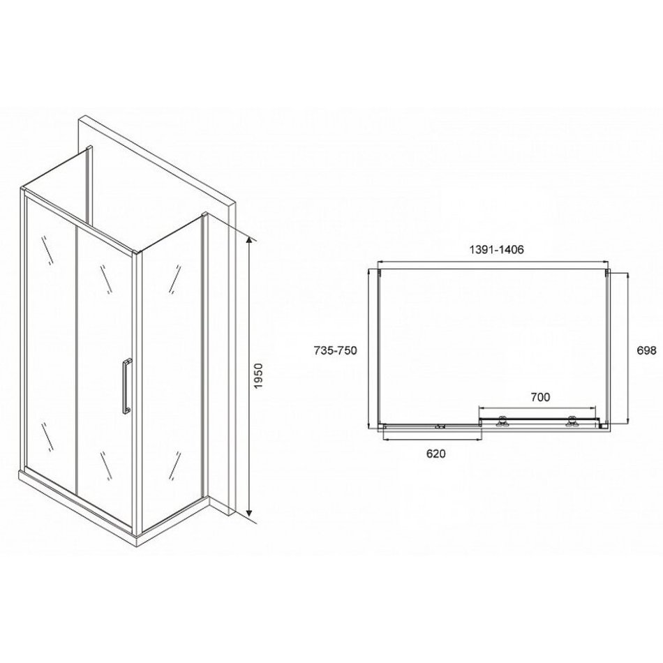 Душевой уголок Abber Schwarzer Diamant, 140 х 75 см, стекло матовое, профиль хром, AG30140MH-S75M-S75M