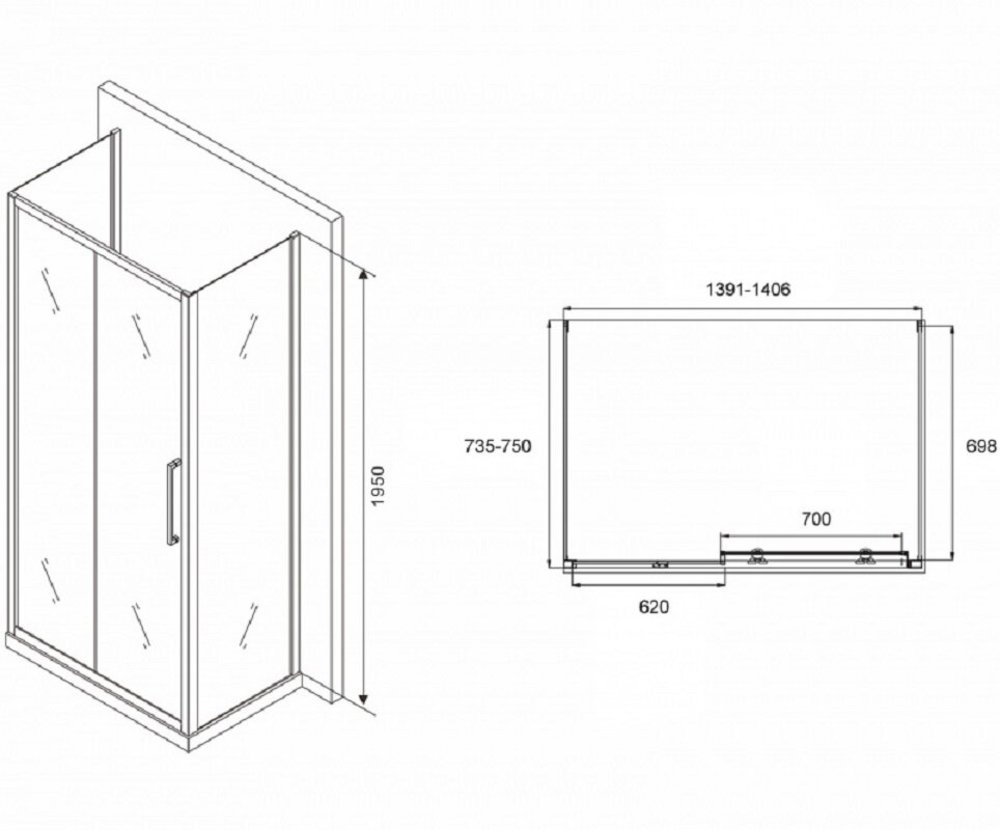 Душевой уголок Abber Schwarzer Diamant, 140 х 75 см, стекло прозрачное, профиль черный, AG30140BH-S75B-S75B