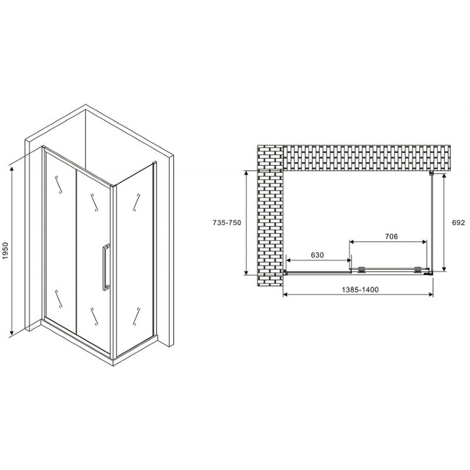 Душевой уголок Abber Schwarzer Diamant, 140 х 75 см, стекло прозрачное, профиль хром, AG30140H-S75