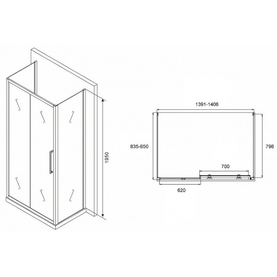 Душевой уголок Abber Schwarzer Diamant, 140 х 85 см, стекло матовое, профиль хром, AG30140MH-S85M-S85M