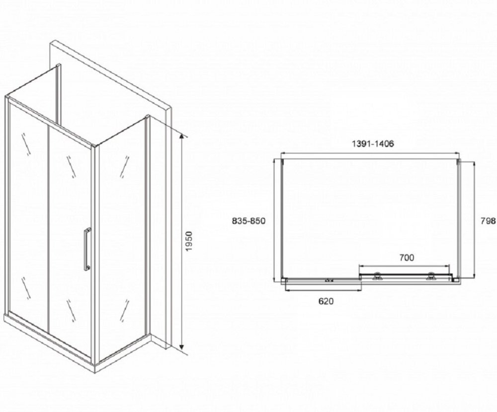 Душевой уголок Abber Schwarzer Diamant, 140 х 85 см, стекло прозрачное, профиль черный, AG30140BH-S85B-S85B