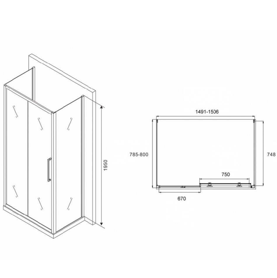 Душевой уголок Abber Schwarzer Diamant, 150 х 80 см, стекло прозрачное, профиль хром, AG30150H-S80-S80