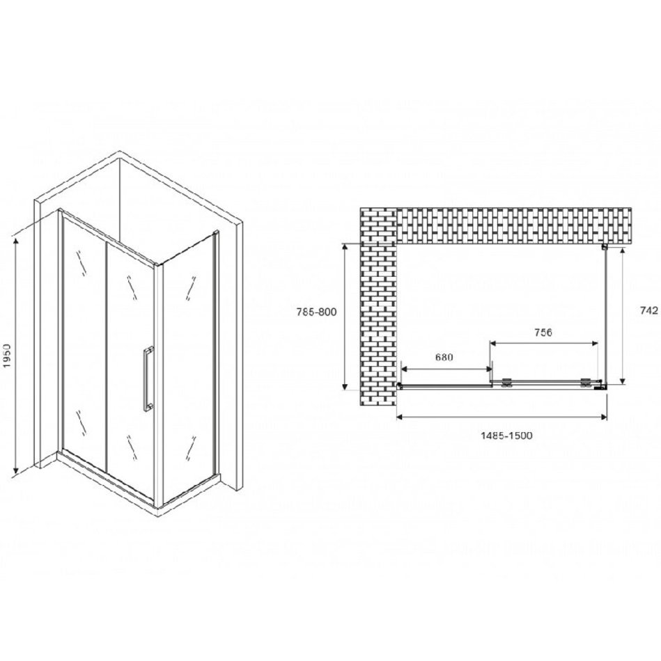 Душевой уголок Abber Schwarzer Diamant, 150 х 80 см, стекло прозрачное, профиль хром, AG30150H-S80