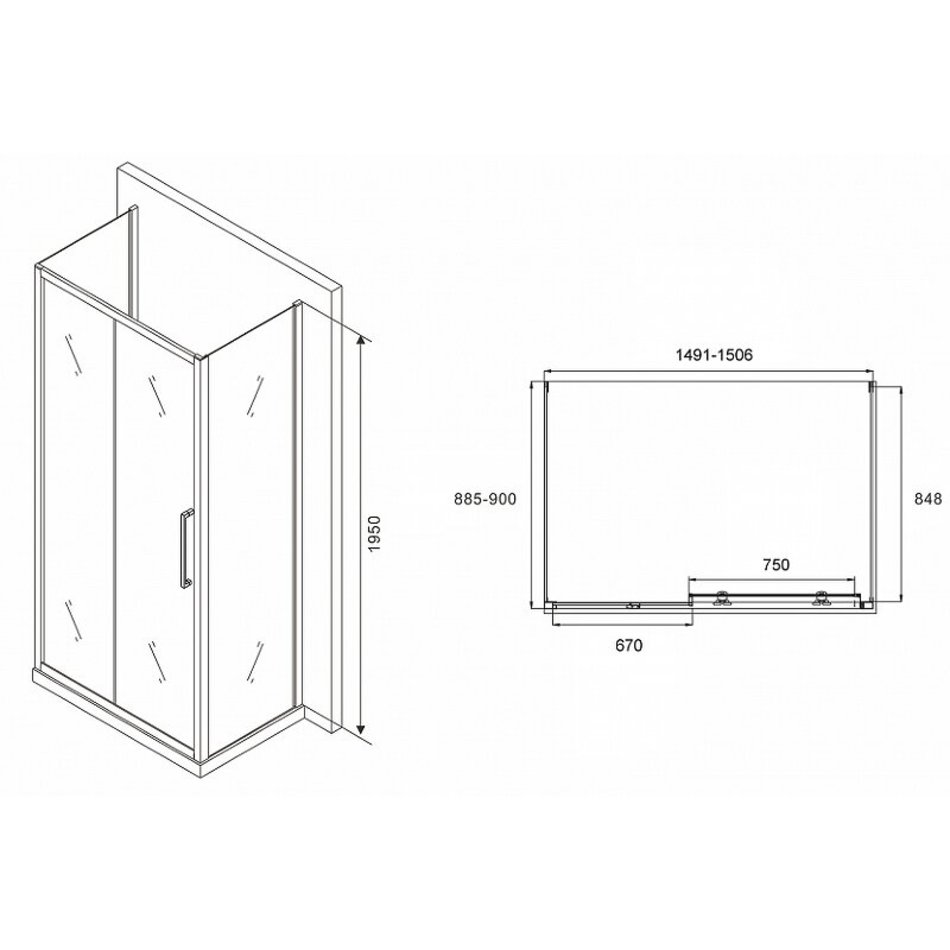 Душевой уголок Abber Schwarzer Diamant, 150 х 85 см, стекло матовое, профиль хром, AG30150MH-S85M-S85M