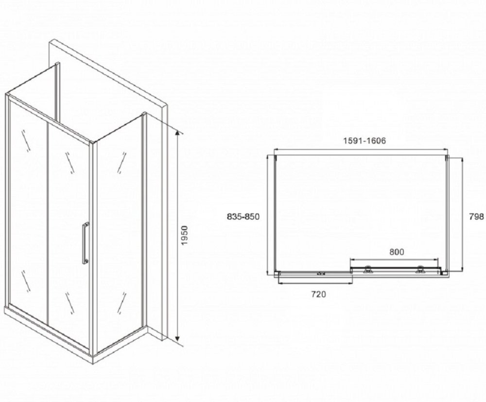 Душевой уголок Abber Schwarzer Diamant, 160 х 85 см, стекло прозрачное, профиль черный, AG30160BH-S85B-S85B