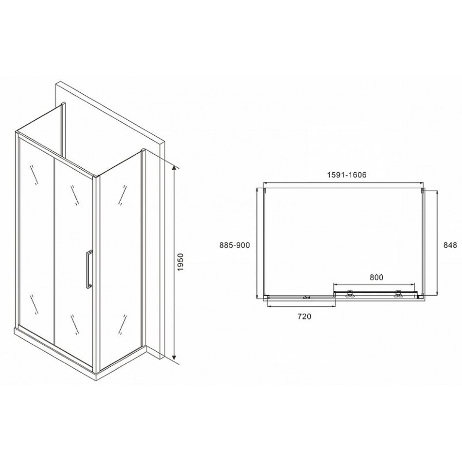 Душевой уголок Abber Schwarzer Diamant, 160 х 90 см, стекло матовое, профиль хром, AG30160MH-S90M-S90M