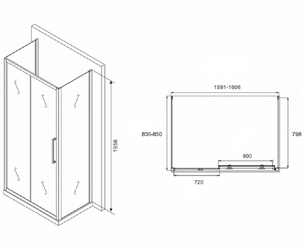 Душевой уголок Abber Schwarzer Diamant, 170 х 75 см, стекло прозрачное, профиль черный, AG30170BH-S75B-S75B