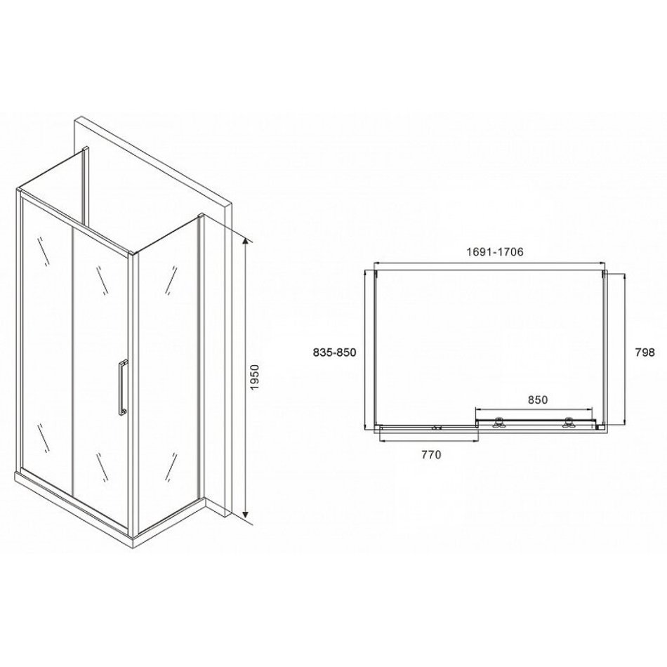 Душевой уголок Abber Schwarzer Diamant, 170 х 85 см, стекло матовое, профиль хром, AG30170MH-S85M-S85M