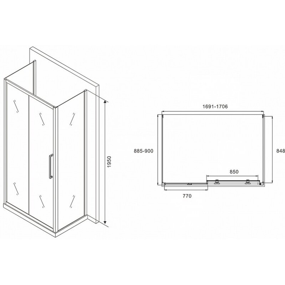 Душевой уголок Abber Schwarzer Diamant, 170 х 90 см, стекло матовое, профиль хром, AG30170MH-S90M-S90M