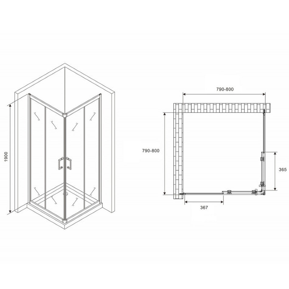 Душевой уголок Abber Schwarzer Diamant, 80 х 80 см, стекло матовое, профиль хром, AG02080MH