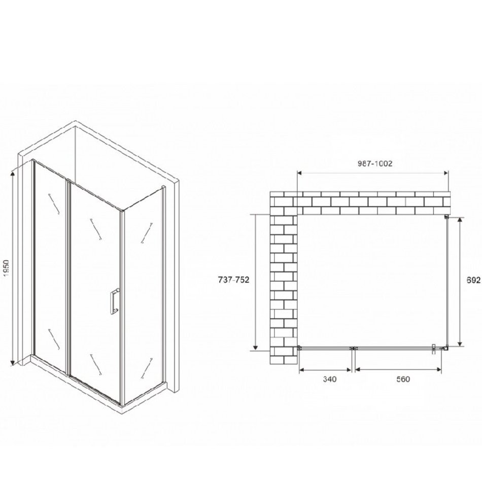 Душевой уголок Abber Sonnenstrand, 100 х 75 см, стекло матовое, профиль хром, AG04100MS-S75M