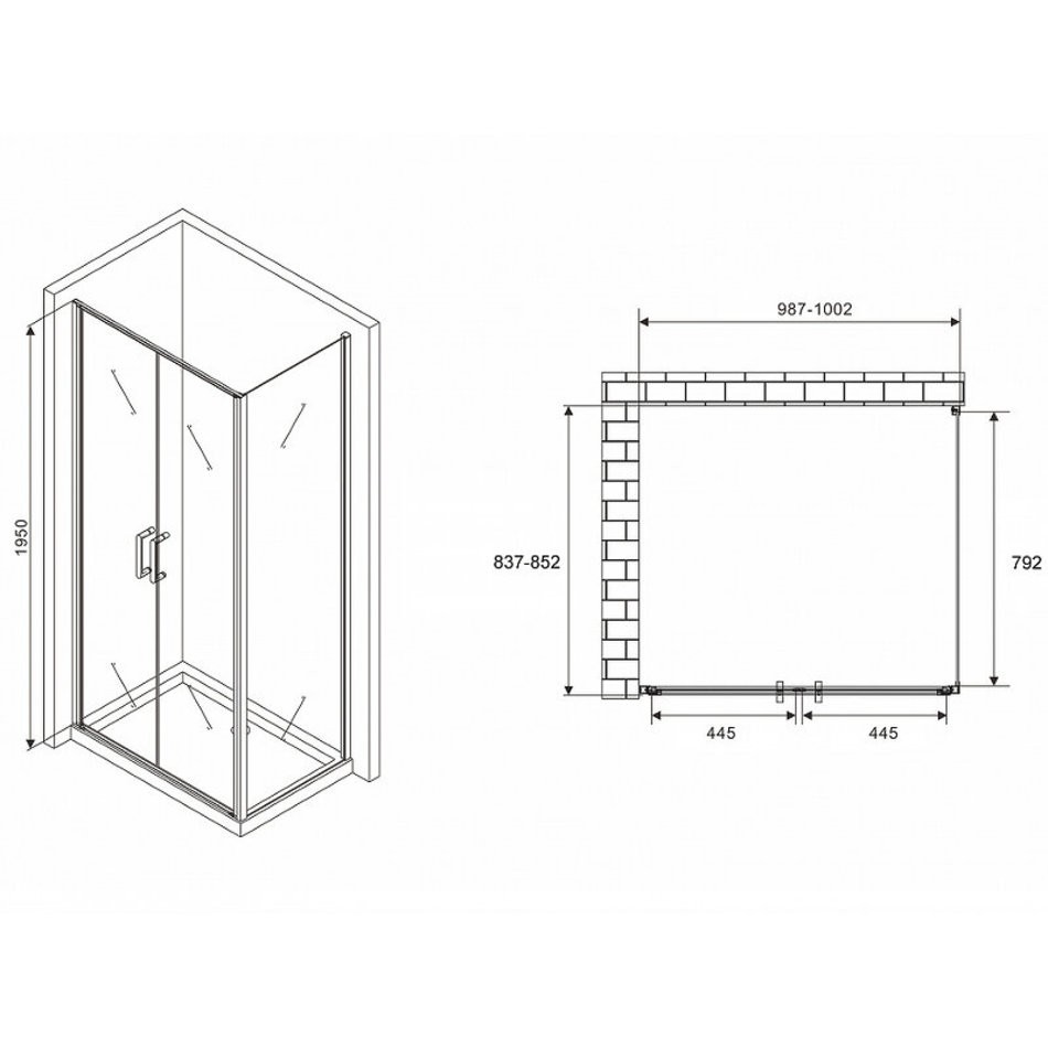 Душевой уголок Abber Sonnenstrand, 100 х 85 см, стекло прозрачное, профиль черный, AG04100BC-S85B