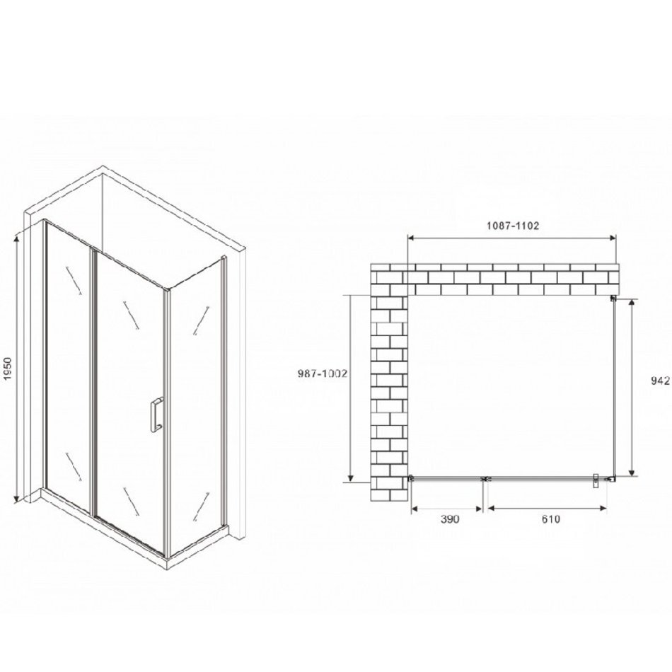 Душевой уголок Abber Sonnenstrand, 110 х 100 см, стекло прозрачное, профиль черный, AG04110BS-S100B