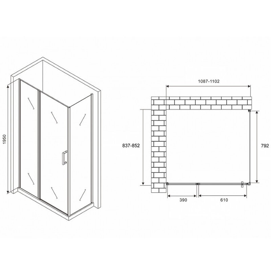 Душевой уголок Abber Sonnenstrand, 110 х 85 см, стекло прозрачное, профиль хром, AG04110S-S85
