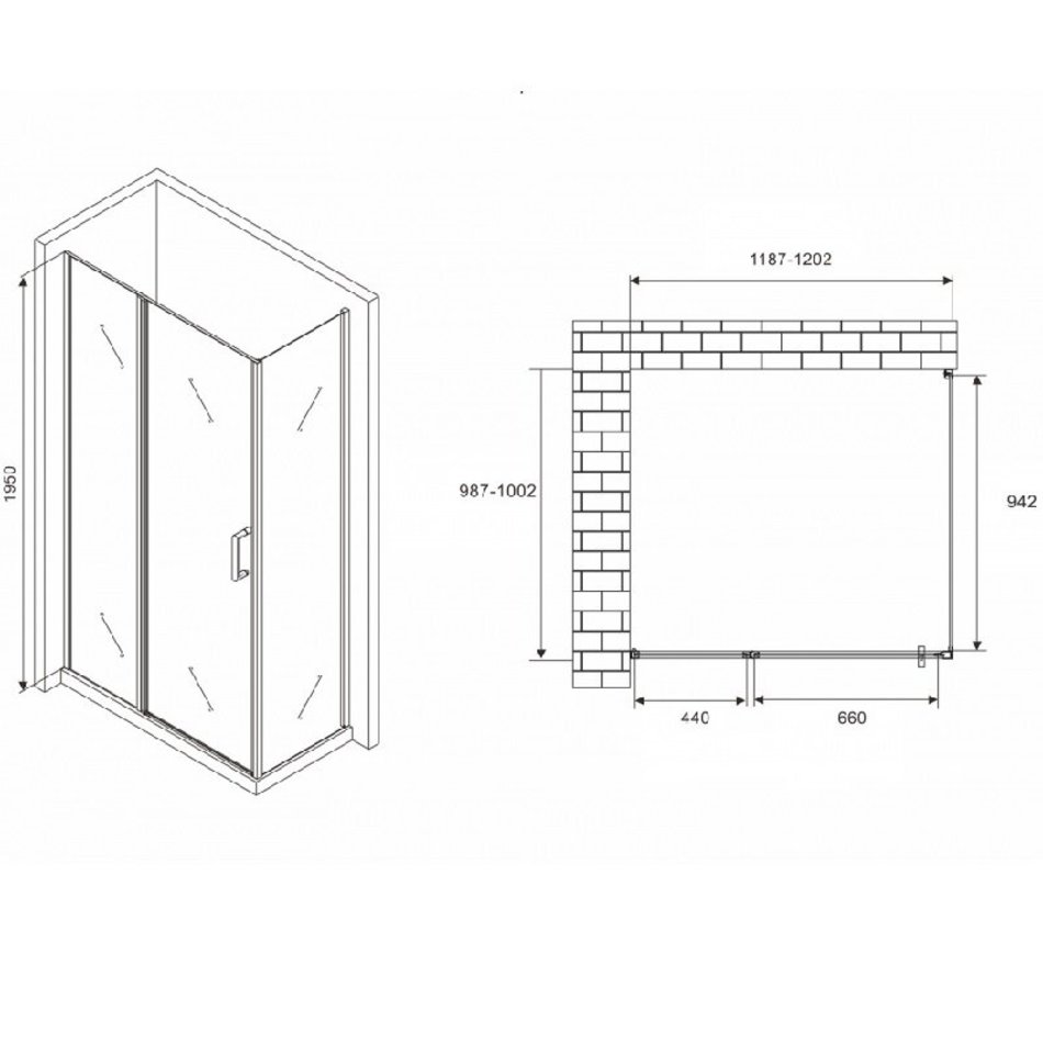 Душевой уголок Abber Sonnenstrand, 120 х 100 см, стекло прозрачное, профиль черный, AG04120BS-S100B